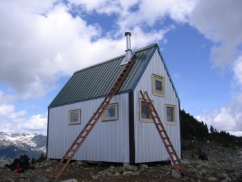 The (2005) Brew Hut is located at a high col just south of Mt. Brew (as the name appears on NTS mapsheets). It sleeps about 12 people comfortably, but has been known to sleep up to 19 if you get really cozy. The hut is very well insulated and has a wood stove. Please use firewood very sparingly. In 2014 we spent about $6500 to helicopter wood in. Other years we've spent similar amounts.