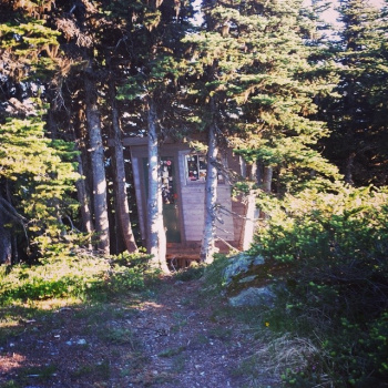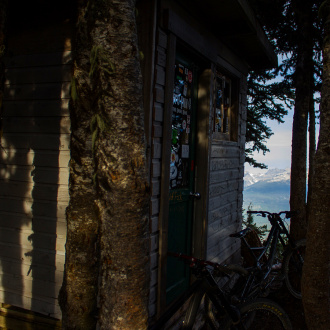 The Stu Inn (aka. the Kyber Smoke Shack) is a small wilderness shelter just outside the Whistler-Blackcomb resort boundary on the foreboding Khyber Ridge (spelt both ways). Khyber Ridge runs East-West and separates the Creekside drainage to the North from the treacherous Cheakamus Lake drainage to the South. Do not venture here in winter unless you plan to head immediately back to the ski resort or have an intimate knowledge of the terrain. The Hut has no facilities (cooking, heating, lighting, water, sleeping space) but does have a small counter top and bench (seating for two).